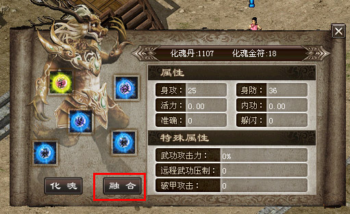 命魂可通过融合功能进行升级,点击化魂界面的“融合”按钮,可将您需要培养的命魂放入中间的格子,点击融合,则其他命魂就会做为经验被中间的命魂吞噬,中间命魂获得经验成长与等级提升。
